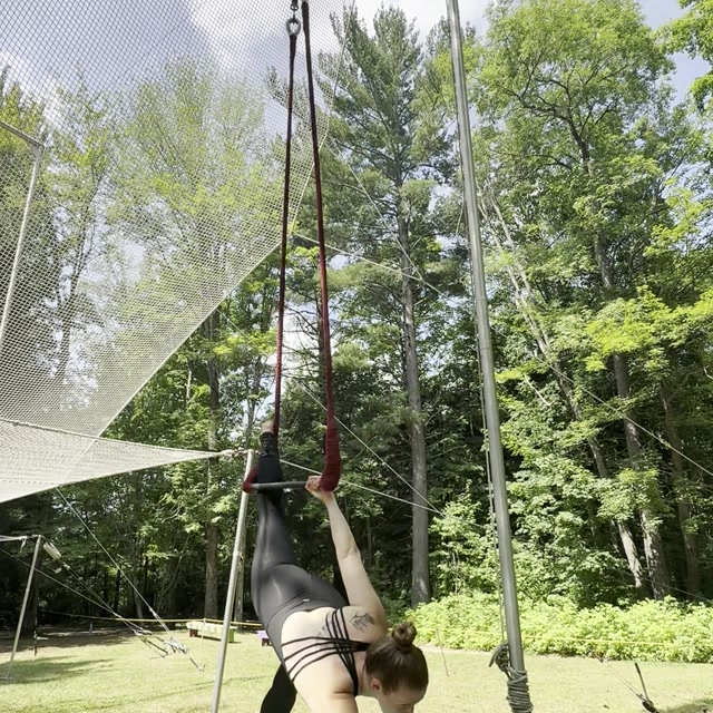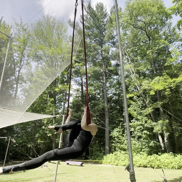 AerialDance trapeze is an aerial discipline performed on a bar attached to two ropes, rigged at a single point on a spinner, allowing the apparatus to rotate smoothly in all directions. The performer uses this movement to create fluid, expressive sequences that blend strength, flexibility, and choreography in a continuous, dance-like flow.